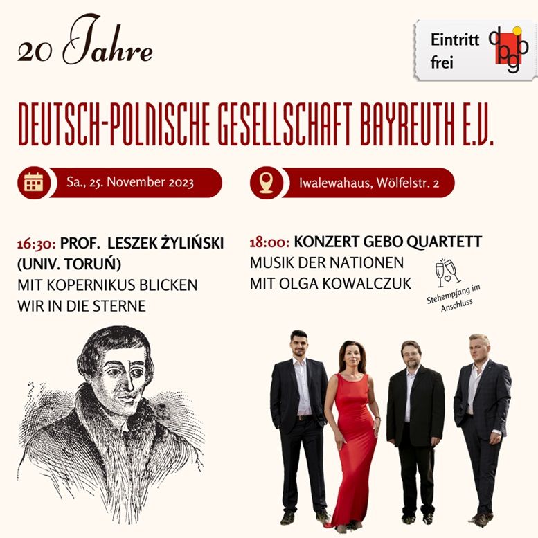 gerade vor einer Woche haben wir unseren 20. Geburtstag gefeiert. Es war ein sehr schöner Abend mit einem interessanten Vortrag von Prof. Leszek Żyliński aus Toruń und dem wunderbaren GEBO-Quartett von Olga Kowalczuk aus Koszalin.