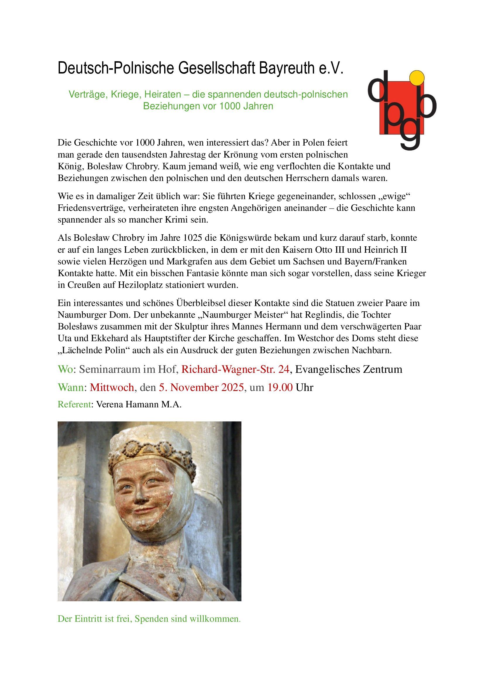 Die Deutsch-Hispanische, Deutsch-Polnische, Deutsch-Tschechische und Deutsch-Französische Gesellschaft werden in diesem Jahr von der Deutsch-Rumänischen Gesellschaft Oberfranken und dem Deutsch-Ukrainischen Verein verstärkt.