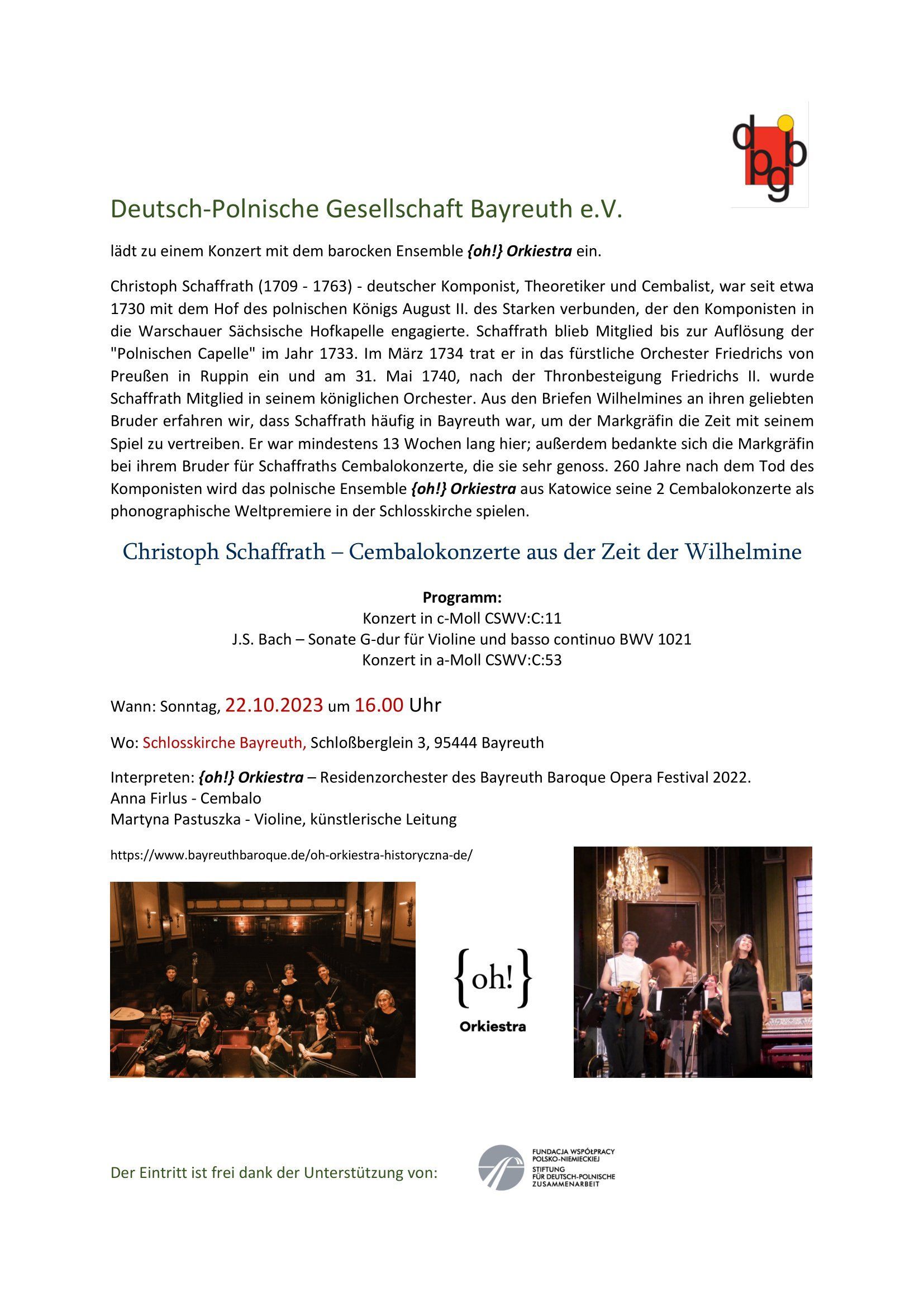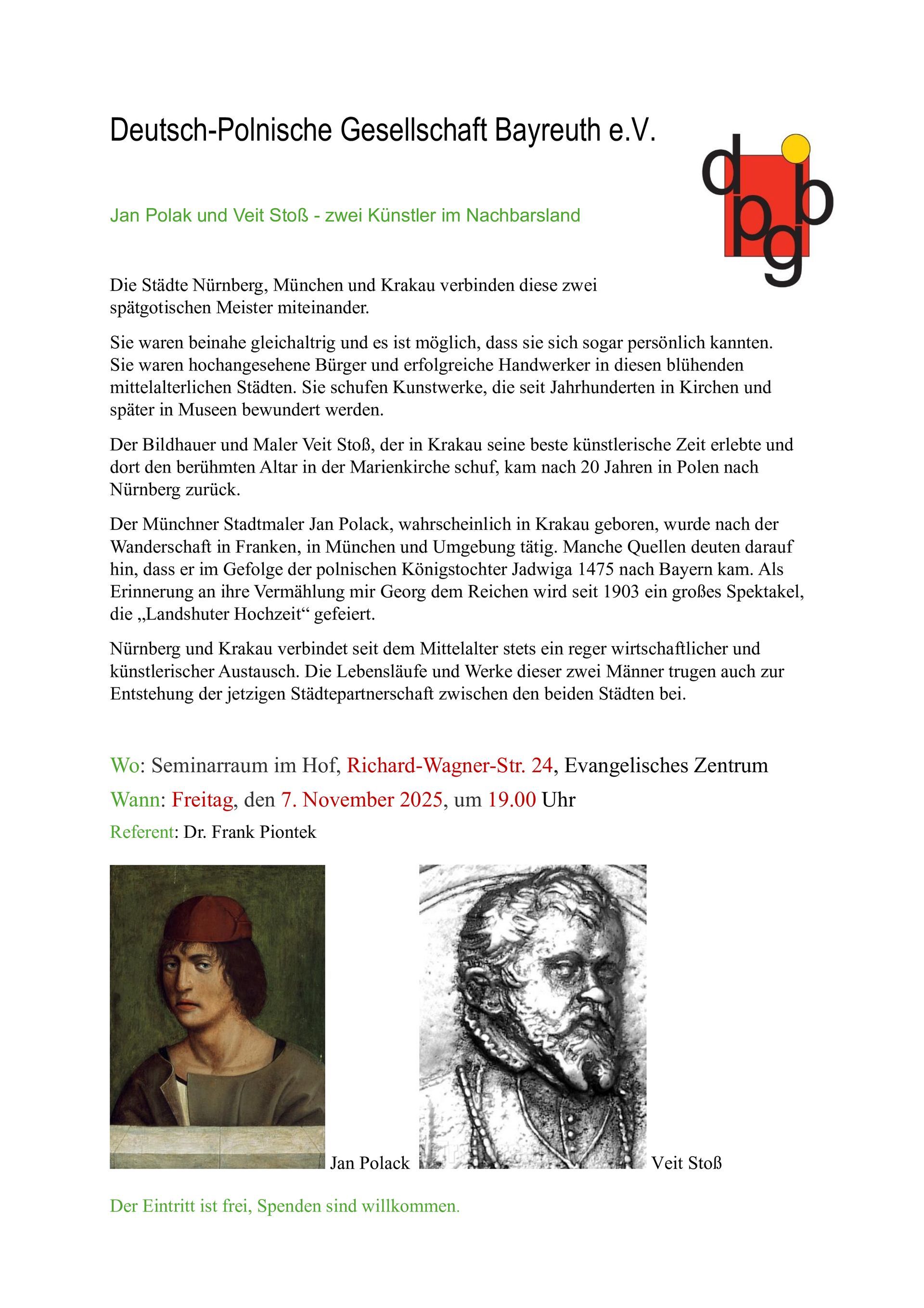 In den gleichen Räumen, am Samstag, 15.10.22 um 18.00 Uhr wird die ehemalige polnische Generalkonsulin für Bayern und Baden-Württemberg, Frau Elżbieta Sobótka den Film „Brückenbauer“ über Władysław Bartoszewski zeigen sowie über die deutsch-polnische Zusammenarbeit referieren.