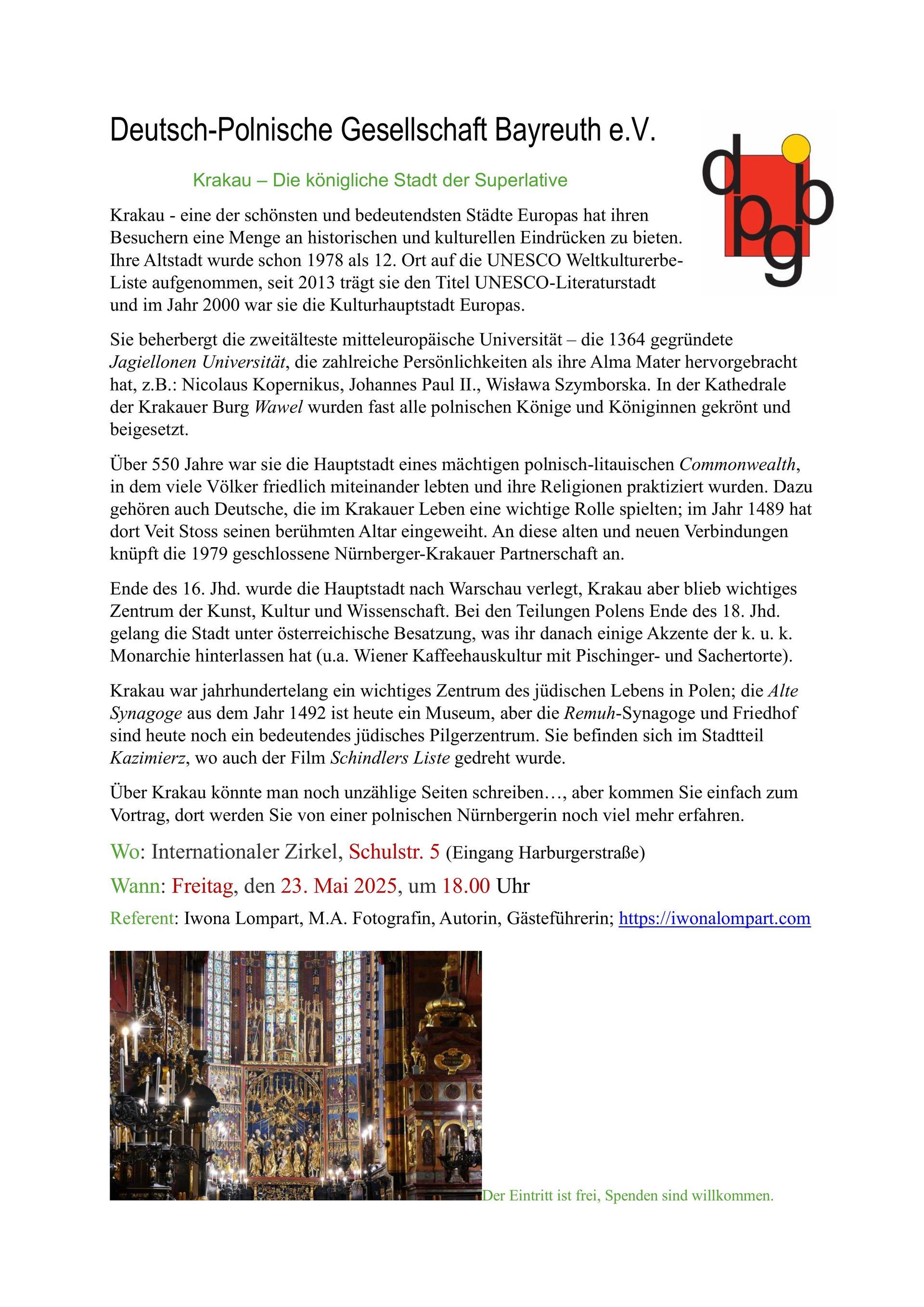DPG Bayreuth Poesie-Abend am Freitag, 12.05.23 um 19.00 Uhr im Internationalen Zirkel