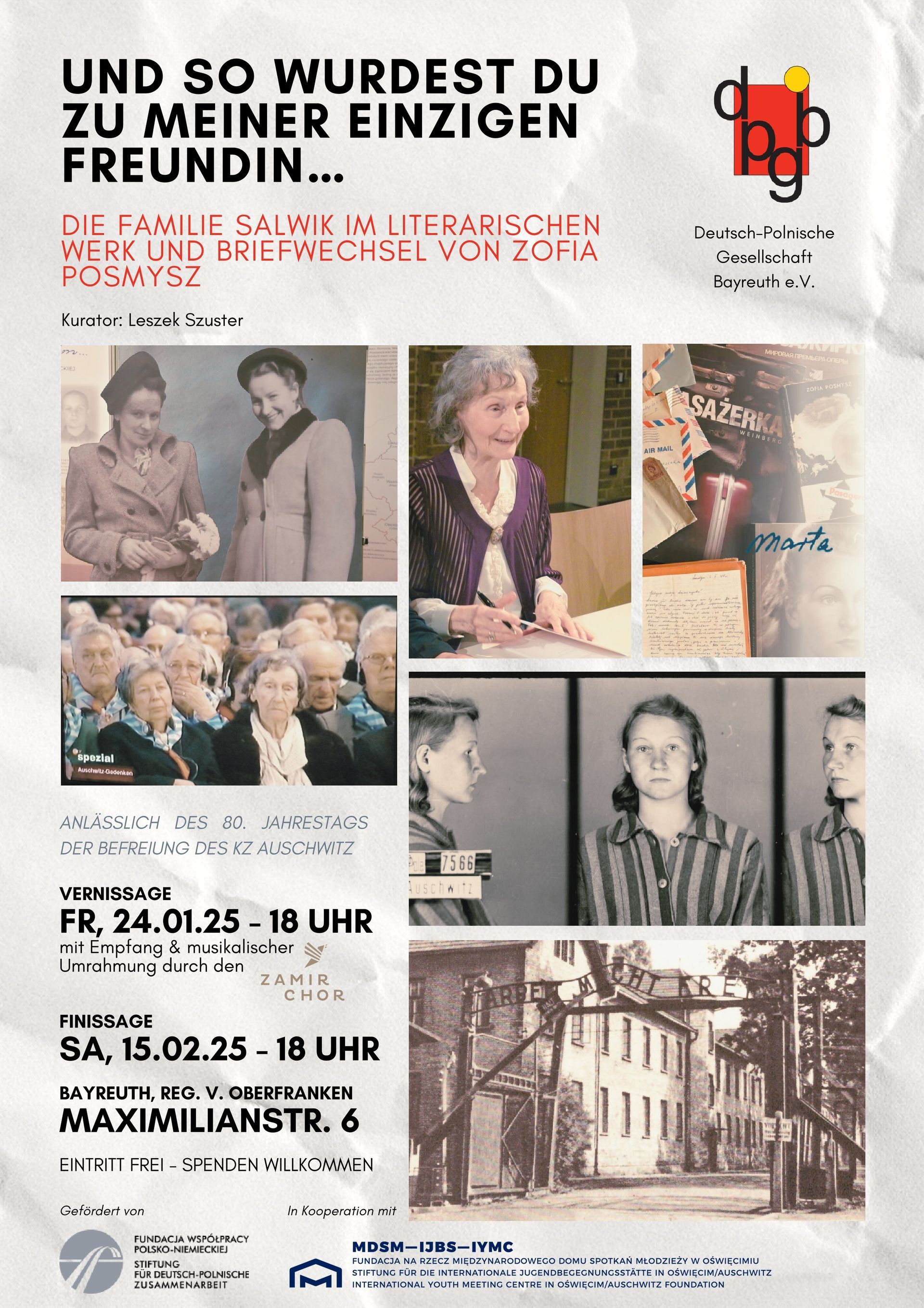 Die Ausstellung wird am 24. Januar 2025 mit einer Vernissage eröffnet, bei der der Film „Wie schade, dass wir so weit auseinander sind …“ gezeigt wird. Den Abschluss bildet die Finissage mit einer Lesung aus den Werken von Zofia Posmysz, am 15. Februar um 18 Uhr.