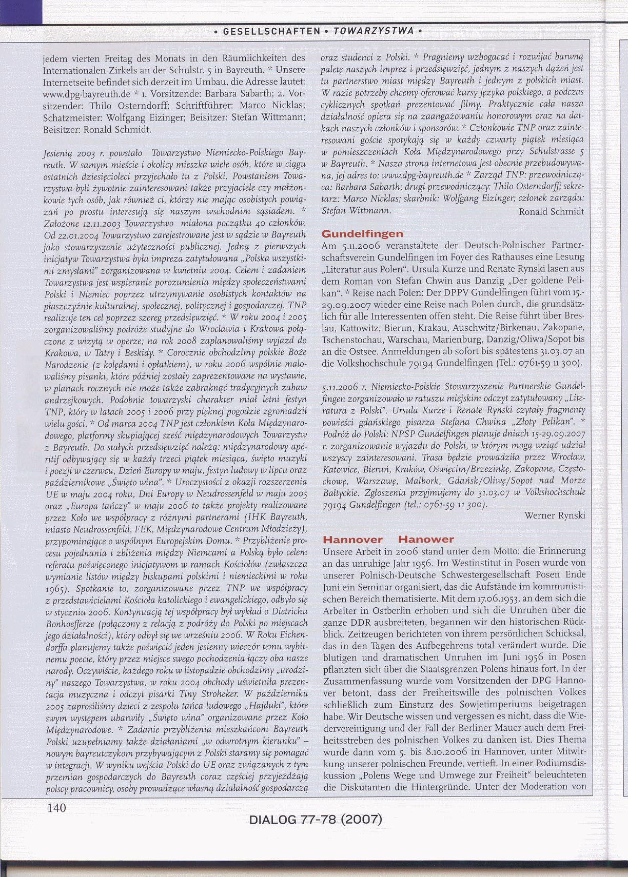 Diese bunte Palette der Veranstaltungen und Aktivitäten möchten wir fortsetzen und hätten noch gerne zu einer Städtepartnerschaft zwischen Bayreuth und einer polnischen Stadt beigetragen. Bei Bedarf wollen wir Polnischkurse anbieten und während der Stammtische Filme vorführen.